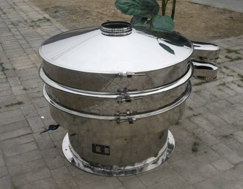 Φ1000型振動(dòng)篩為1000mm直徑雙層層三個(gè)出料口的全碳鋼材質(zhì)旋振篩,子母網(wǎng)分離式網(wǎng)架,上半部噴白漆。
