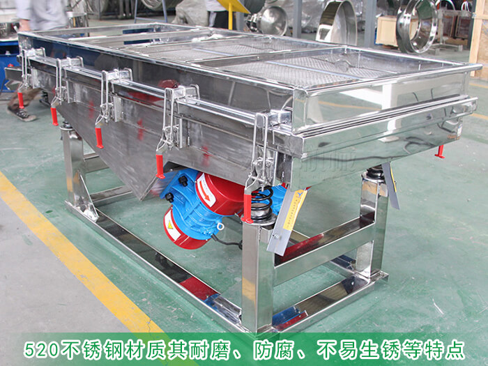 質(zhì)量好不好就要看看材料的選擇是不是好的,新鄉(xiāng)大漢機(jī)械的不銹鋼直線篩的,材質(zhì)使用的都是520不銹鋼材質(zhì)。其不僅擁有耐磨的性質(zhì),還有防腐,不易生銹的特點。