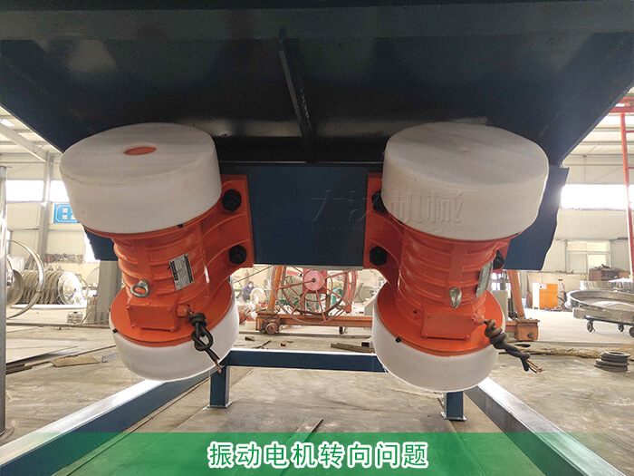 直線篩時使兩臺臥式振動電機作為振動篩,電機的轉向和分為正轉和反轉兩種,正常情況下兩臺電機的轉向是相反方向的,但如果用戶在接電時正負極接錯就會引起電機同向旋轉就會出現篩面物料不走料的問題;