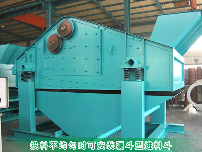 砂巖礦用振動篩一般篩分產量比較大,進料時投料量也會很大,所以很容易造成篩面物料堆積,影響過網率,出現篩網堵塞的情況,所以在進料時需要均勻進料,不要一次性投入過多物料??稍谶M料口上蓋上加裝一個漏斗型的進料斗,使砂巖勻速進料避免堆積。