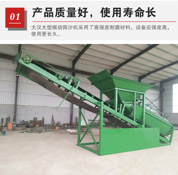 對于大型振動篩沙機(jī)現(xiàn)場來說,一般要求的產(chǎn)量比較大,所以要求振動篩沙機(jī)的承載能力要足夠大,輸送量也比較大,大漢振動篩沙機(jī)篩分產(chǎn)量最高可達(dá)800t/h,篩分產(chǎn)量大。